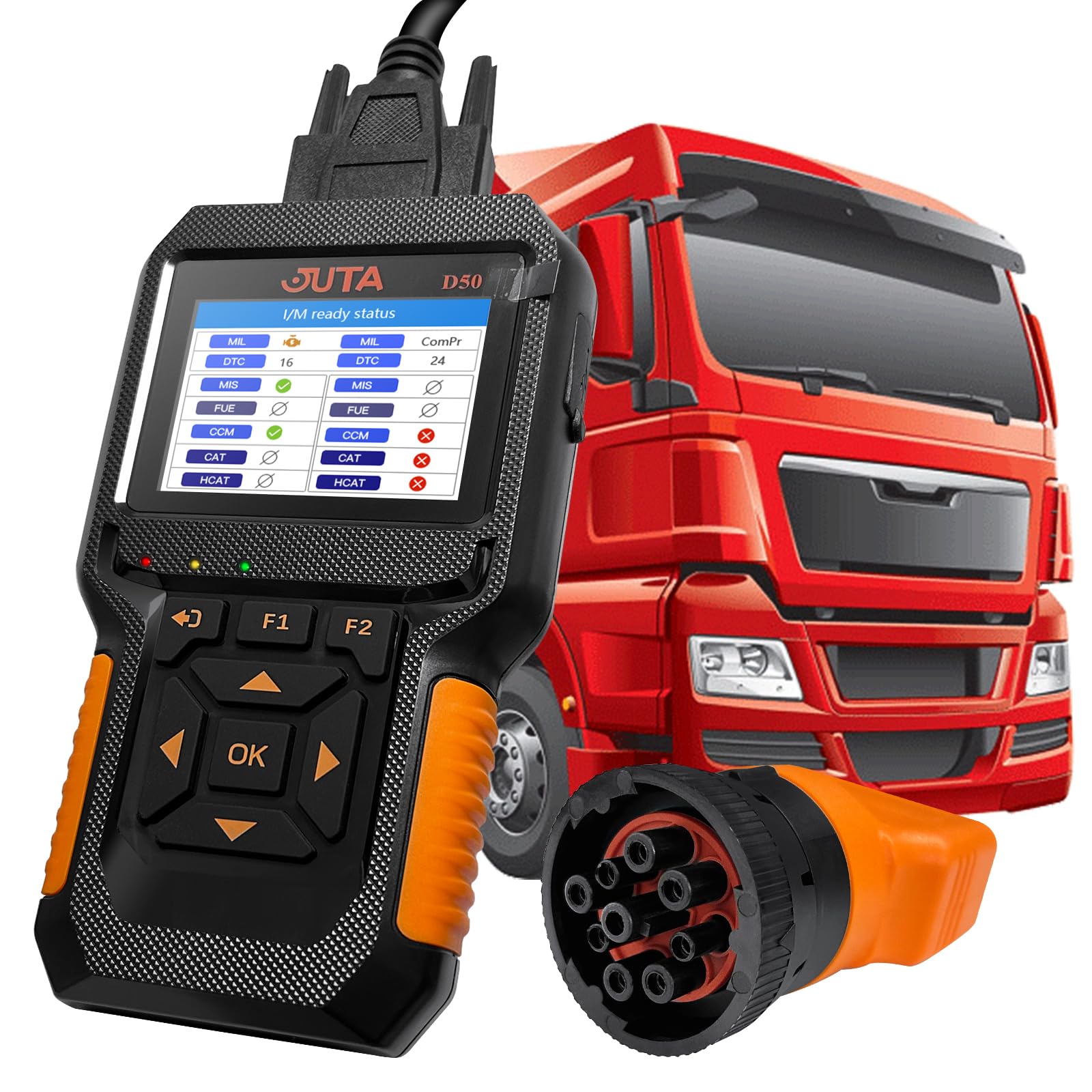 JUTA D50 är ett mångsidigt OBD2-diagnosverktyg som fungerar med både 12V personbilar och 24V lastbilar. Det är designat för att snabbt identifiera och radera motorrelaterade felkoder, visa live-data i realtid och hjälpa dig att förstå varför en varningslampa är tänd – oavsett om det gäller en bil eller en lastbil.